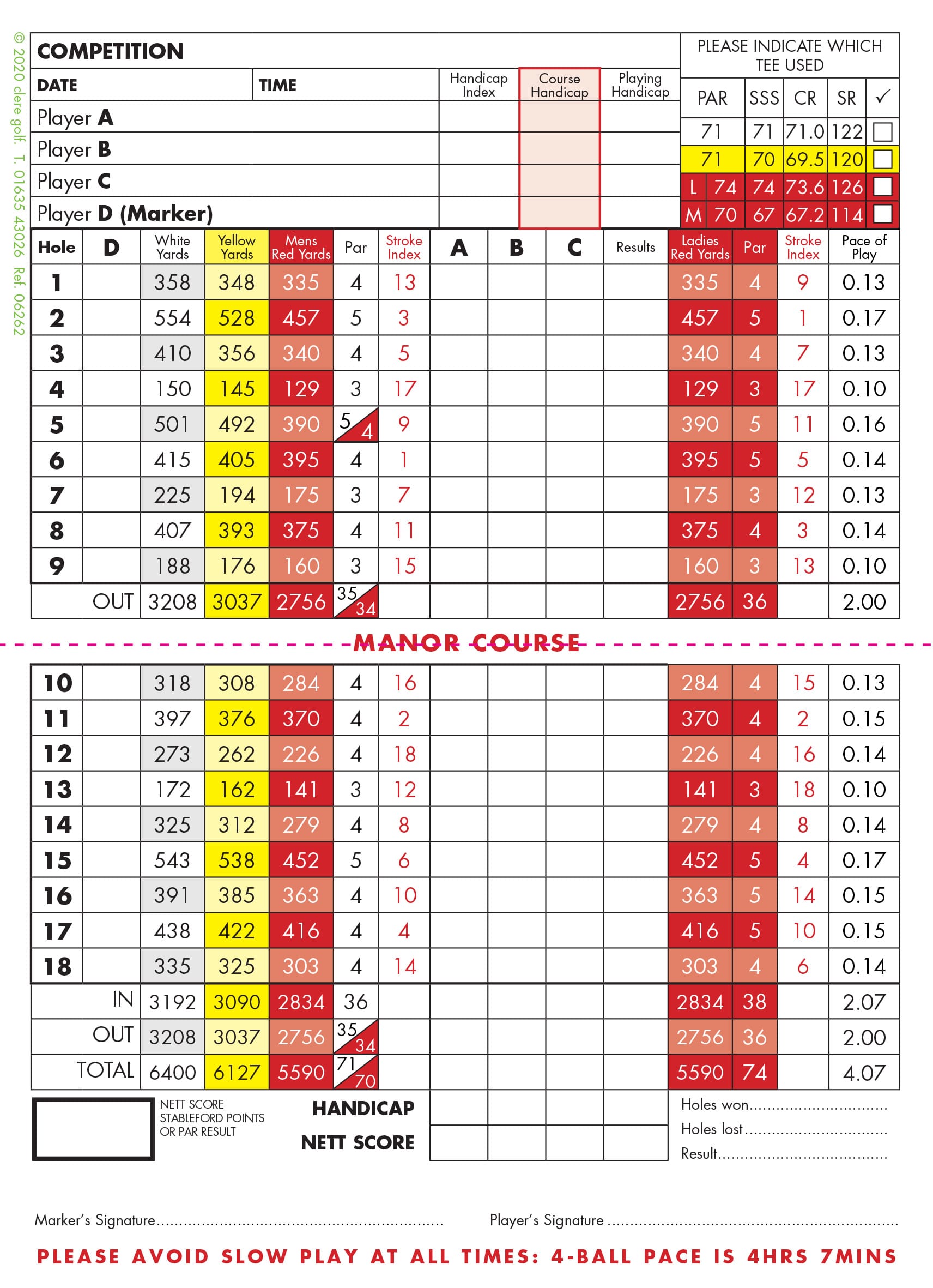 Score Card Lilliardsedge Holiday Park And Golf Course